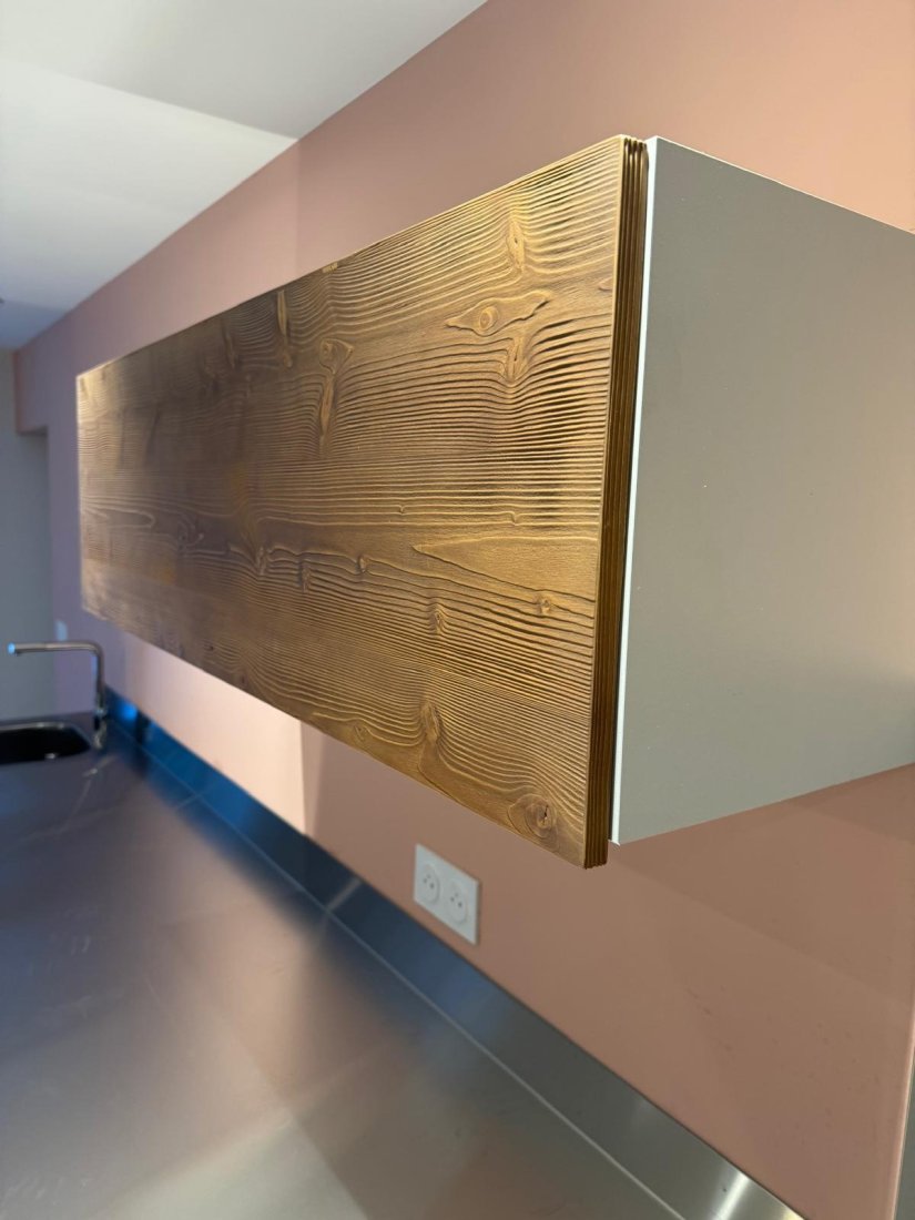 Pour ce projet, nous avons réalisé une étude personnalisée afin de créer une cuisine répondant aux contraintes spécifiques du client. Nous avons posé des plans de travail en inox, installé un système de hotte professionnelle, intégré des meubles de rangement sur-mesure et sélectionné des équipements électroménagers haut de gamme. L’éclairage a été pensé pour assurer un confort visuel optimal à chaque poste, et l’ensemble de la cuisine a été conçu pour faciliter le nettoyage et l’entretien quotidien. Grâce à notre expérience de cuisiniste, chaque détail a été anticipé pour garantir une installation fonctionnelle, esthétique et durable.