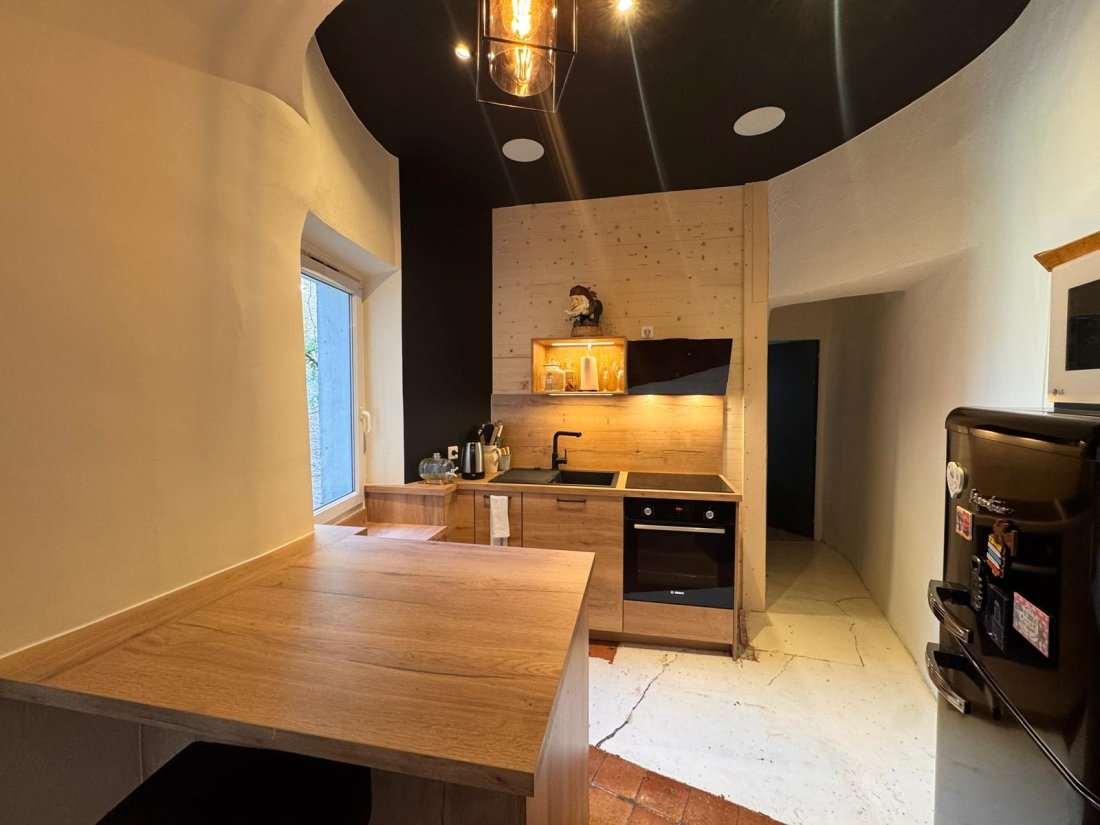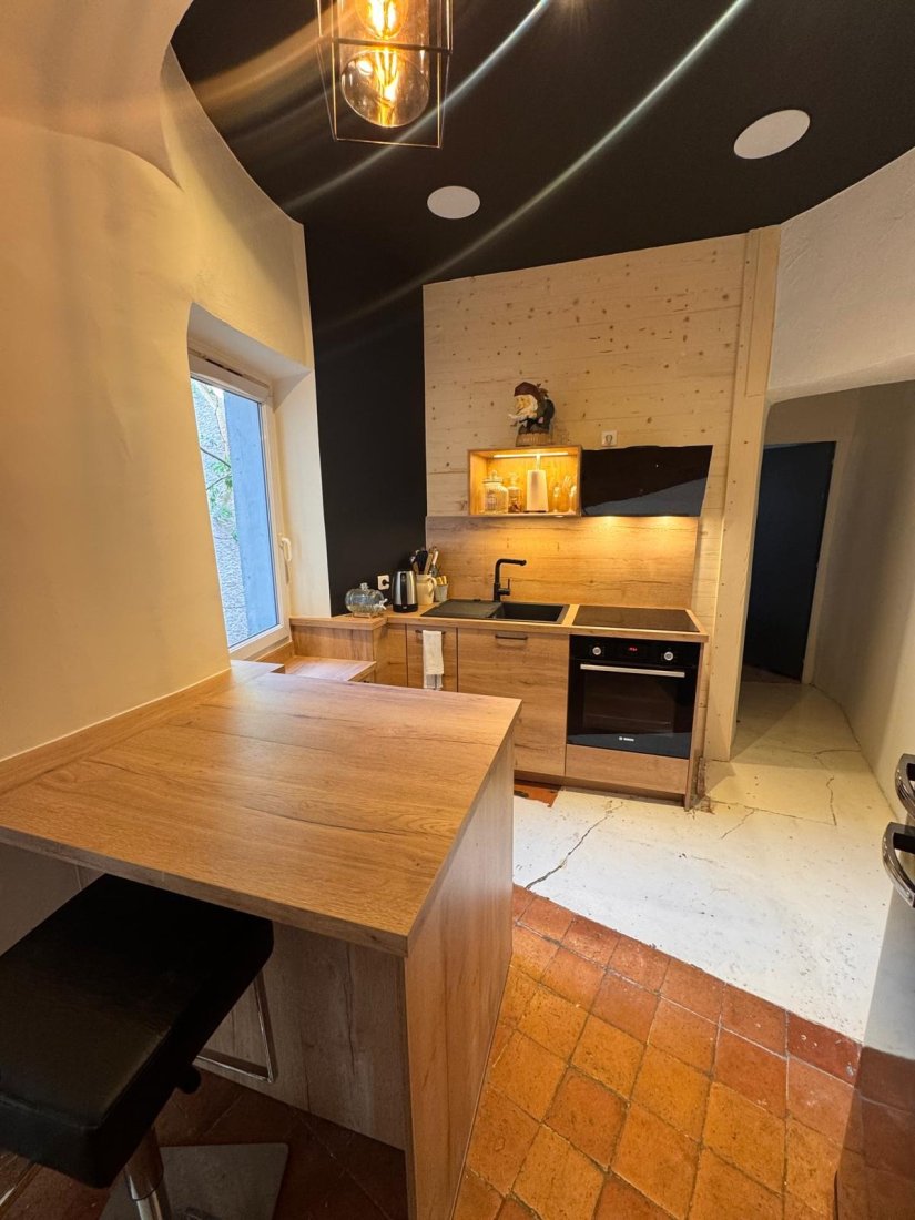 Avant notre intervention, la cuisine manquait de praticité, d’esthétique et de rangements adaptés. Les meubles étaient vieillissants et l’espace peu valorisé. Après notre passage, la cuisine a totalement changé de visage : plans de travail arrondis, mobilier sur-mesure épousant chaque courbe, éclairage optimisé et intégration des équipements modernes. Le résultat : un lieu convivial, lumineux et parfaitement fonctionnel, où chaque détail a été pensé pour faciliter la vie quotidienne tout en sublimant la singularité architecturale de la tour.